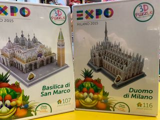 Set di due puzzle 3D di monumenti famosi, perfetti per gli appassionati di modellismo e architettura. - Puzzle 3D Basilica di San Marco, 107 pezzi. - Puzzle 3D Duomo di Milano, 116 pezzi. - Entrambi i puzzle sono della serie EXPO 2015. - Tecnologia easy fit per un montaggio semplice.