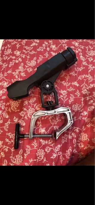 Supporto per canna da pesca, ideale per barca o gommone. - Struttura in metallo resistente. - Supporto in plastica nera regolabile. pescare/fishing
