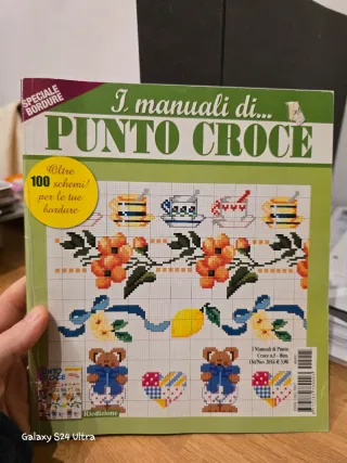 Raccoglitore per schemi di punto croce, con copertina decorata. - Titolo: Facilissimo a punto croce - Editore: D'AGOSTINI • ideaDonna - Contiene idee, schemi e consigli per la scuola del punto croce. Il raccoglitore ha 2 anelli rotti la si può utilizzare tranquillamente lo stesso