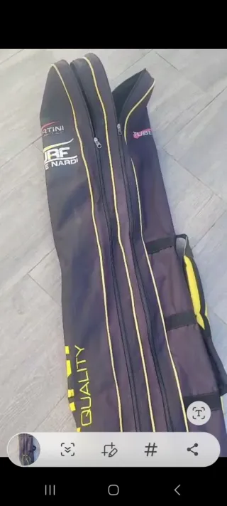 Fodero porta canne TUBERTINI USATO MA PERFETTO MOLTO CAPIENTE - Colore blu con strisce gialle. - Chiusura a zip.