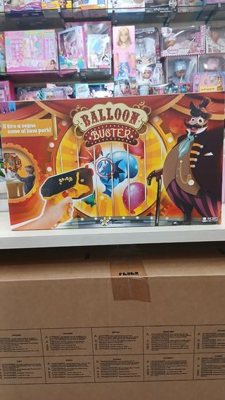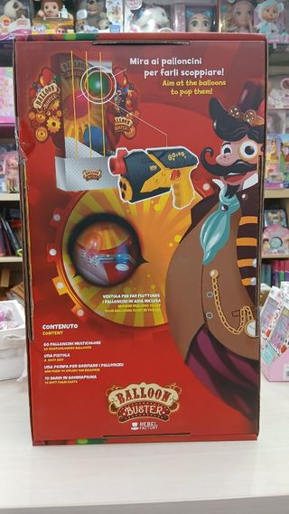 Gioco di tiro al palloncino Balloon Buster, come nuovo. Include pistola, ventilatore per far fluttuare i palloncini, 60 palloncini e una pompa. Perfetto per divertirsi in famiglia! - Include pistola giocattolo - Ventilatore per palloncini - 60 palloncini di gommapiuma - Pompa per palloncini