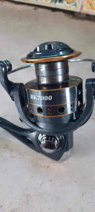 Mulinello da pesca Rooblinos HE 7000, con finitura dorata sulla bobina. Maneggevole peso gr 300 circa grande capacità di carico ottima resistenza all'usura manovella reversibile nuovo mai usato ancora in confezione originale - Bobina in metallo dorato. - Corpo del mulinello nero. - Dettagli argentati.