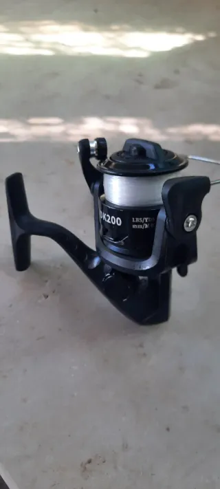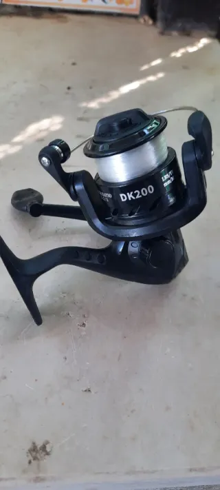 Mulinello da pesca di colore nero leggero ideale per pesca leggera con fili di diametro sottile bobina in metallo nuovo mai usato ancora in confezione originale - Modello DK200 - Bobina con filo bianco