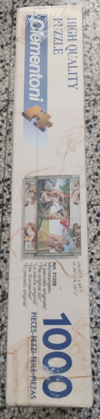 Puzzle Clementoni da 1000 pezzi raffigurante Il peccato originale di Michelangelo. Fuori produzione e considerato raro. - Articolo: 31228 - Dimensioni: 67,7 x 47,7 cm - Titolo: Il peccato originale / The original sin / Le péché originel / Der Sündenfall / El pecado original Nuovo con ancora il cellophane di fabbrica... Trattabile