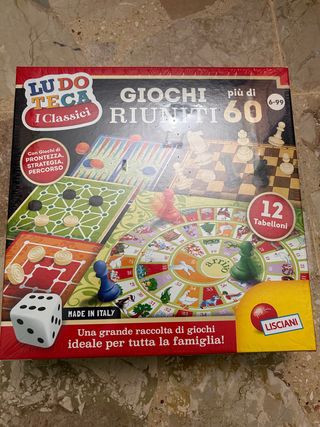 Ancora sigillato DETTAGLI PRODOTTO Tanti giochi per tutta la famiglia 1+ giocatori - Manuale dei giochi - Scacchi e pedine della Dama in plastica - Tante plancie di gioco - Giochi di percorso - Giochi di strategia - Giochi di prontezza 6 tabelloni double-face - 30 pedine del Backgammon - 6 gettoni - 24 pedine della Dama in plastica - 32 pezzi degli Scacchi in plastica - 8 birilli - 2 dadi - Guida ai giochi