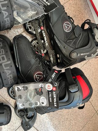 vendo rollerblade taglia 43, marca Aiwalk, usati ma in ottime condizioni. nel prezzo invludo un pattino freno nuovo e tutto il set di protezioni per ginocchia, comiti e mani.