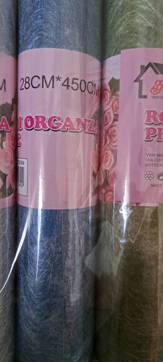 Rotoli organza nuovi cm 28 x mt 4,5 (viola venduto) oro argento bluette verde rosa antico