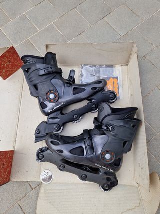 Vendo un paio di pattini in linea Rollerblade, modello Spicebl, taglia US 10 (EU 43). La struttura perfetta, le ruote sono da sostituire. - Colore grigio scuro - Misura US 10 (EU 43) - Modello Spicebl - Inclusi nella confezione originale