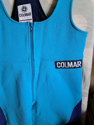 Tuta da sci vintage Colmar degli anni '90, perfetta per le amanti dello sci. Tuta anni 90 mdello da gara, con inserti rinforzati gambe,dettaglio tecnico dei modelli da competizione veste ultra slim max 44 Vita cm 37 Fianchi cm 45 Lunghezza pantalone da scollo cm 90 - Design a salopette con bretelle. - Zip frontale per una facile vestizione. - Logo Colmar sul petto - Inserti a contrasto su gambe e ginocchia.