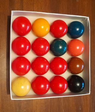 Set di palle da biliardo Snooker Aramith. - Diametro: 48 mm. - Colori assortiti: rosso, giallo, blu, verde, arancione, marrone, nero. seminuove perfette altri tipi e diametri per boccette goriziana italiana pool carambola super aramith negli altri miei annunci