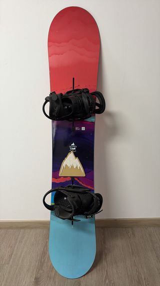 Snowboard Burton Feelgood da 149 con Attacchi Burton Scribe M. Tavola da donna Camber. Pari al nuovo, usata pochissime volte. - Design con grafica colorata.