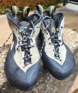 Scarponi da arrampicata Miura 40'5, suola sostituita una volta con punta. Usati ma in buone condizioni.