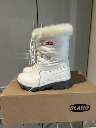 Scarponi da neve Olang per bambina, colore bianco. - Fodera interna in pelliccia sintetica. - Chiusura con lacci. - Dettaglio fiocco di neve. - Suola in gomma antiscivolo.
