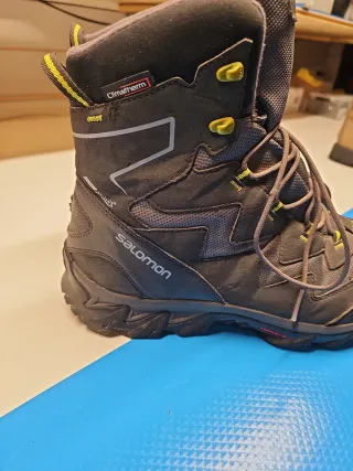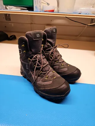 Scarponi da uomo Salomon, taglia 46. Ideali per l'inverno. - Colore grigio e nero. - Chiusura con lacci. - Logo Salomon sulla linguetta.