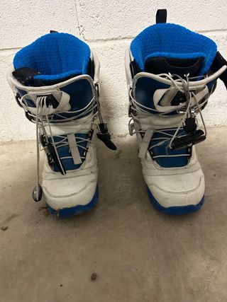 Scarponi da snowboard da uomo, ideali per le tue avventure sulla neve. Presentano un design moderno e confortevole. - Colore bianco e blu. - Sistema di allacciatura rapida. - Interno imbottito per maggiore comfort.