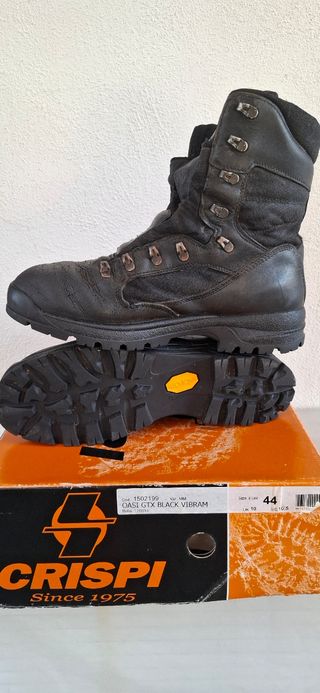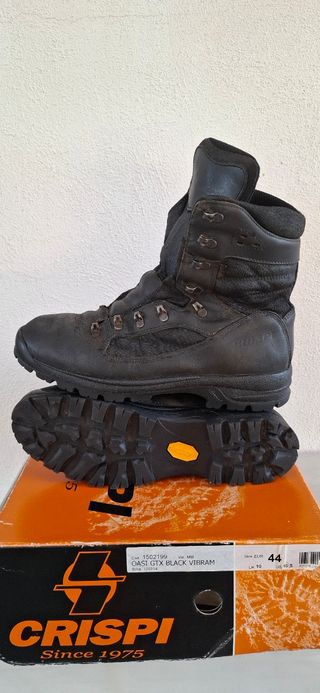 Vendo anfibi crispi oasi gtx taglia 44 usati ma ancora in buono stato. l esterno anche se denota segni di usura non intacca la membrana membrana Gore-Tex e la sua impermeabilita e suola perfettamente intatta. Ideali per attività outdoor,caccia e airsoft, garantiscono comfort, traspirabilità e resistenza. Utilizzati con cura, sempre grasso di foca, cedo con scatola originale e lacci.