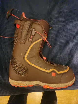 Scarponi da snowboard Burton Drive X da uomo, ideali per le tue giornate sulla neve. - Colore marrone con dettagli arancioni. - Sistema di allacciatura rapida. - Suola Vibram.