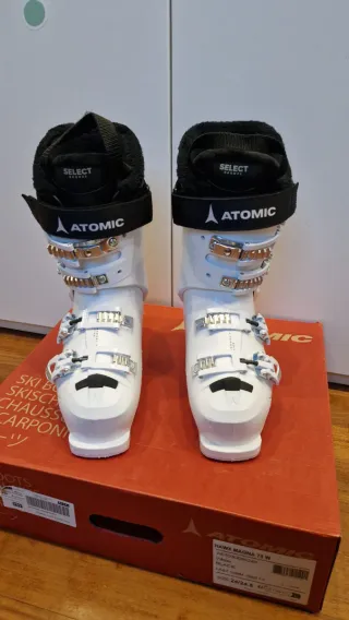 Scarponi da sci Atomic HAWX MAGNA 75 W da donna, colore bianco. - Modello: HAWX MAGNA 75 W - Colore: Bianco - Taglia: 24/24.5 Corrisponde a un 37 38 circa Scarpone all-mountain da donna a pianta alta, con una pianta da 102 mm ad alto volume. Il gambetto con Adaptive Fit System (AFS) è dimostrato di uno spoiler rimovibile che ne aumenta la forma a tulipano e il volume interno. Con solette nuove mai usate. Piccoli graffi come visibili in foto.