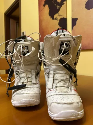 Usati solo una settimana, in perfette condizioni con segni normali di uso, doppio sistema boa, sistema di aggancio rapido paragonabile a step on Burton ma più performante, pagati 700€