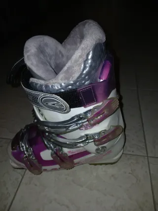 Vendo scarponi da sci Salomon, da donna, taglia 37. Hanno una doppia chiusura sulla pianta del piede e un aggancio posteriore per rendere lo scarpone più morbido quando si deve camminare (visibili in foto). Sono comodi, molto caldi e duraturi. Sono stati utilizzati, ma sono ancora molto buoni. Vendo per passaggio a taglia superiore.
