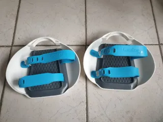 Tavole da snowboard Runslide Wed'ze - Design bianco e blu. - Cinghie regolabili per il fissaggio su scarpe, doposci, scarponi. Per scivolare sulla neve in piano o leggere pendenze. Bambini ragazzi donne. Ottime condizioni come da foto. Visto e piaciuto.