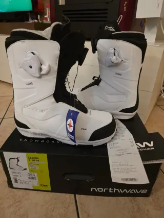 Scarponi da snowboard Northwave modello Legend 2. - Colore bianco e nero. - Sistema di chiusura doppio BOA. - Taglia 285. scarponi scontrinati Legend 2 e in garanzia 27.12.25, vendo causa taglia errata dopo 2 ore di utilizzo. 43.5 28.5. certificati con doppio boa garantito a vita. scatola e tutto. listino 329 euro