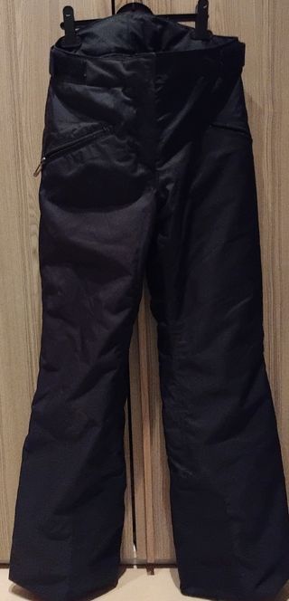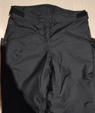 Pantaloni da sci o snowboard di colore nero. - Tessuto resistente. - Design funzionale. -Pantaloni da sci o snowboard neri, progettati per offrire impermeabilità e isolamento termico sulla neve. Questi pantaloni presentano una vita regolabile con chiusure in velcro, tasche con zip gommate per impedire l'ingresso dell'acqua e ghette interne alle caviglie per evitare che la neve entri negli scarponi.