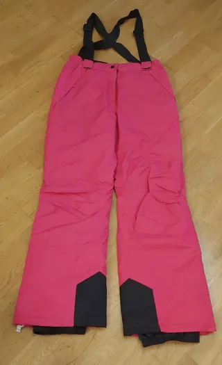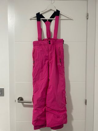 Pantaloncini da sci rosa con bretelle regolabili e dettagli in nero. Perfetti per godersi la neve con comfort e stile. - Cerniere nelle tasche laterali. - Polsini elastici alle caviglie. - Bretelle larghe e comode. - Del marchio Quechua (Decathlon)