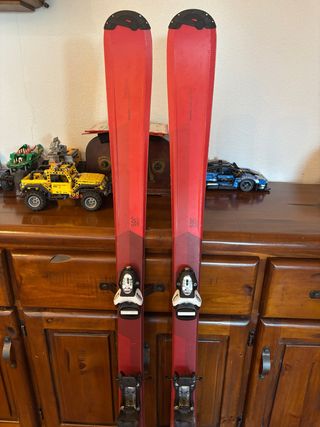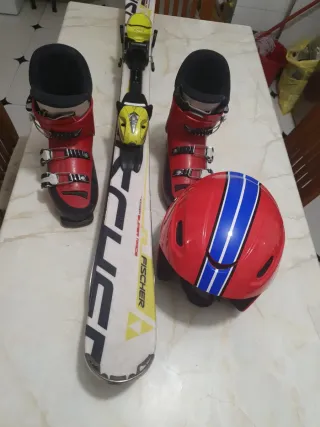 Set completo per sciare. - Sci della marca Fischer. - Scarponi da sci rossi Rossignol. - Casco da sci rosso con dettagli blu. Marca Madness. - In base all'età, posso regalare abbigliamento da neve. Guarda il pantalone che si adatta a vari anni poiché si regola come si vede in foto.