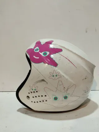 Casco da sci bianco con un divertente design a forma di fiore rosa. - Design a fiore rosa sul lato. - Interno imbottito nero. - Cinghia di ritenuta regolabile.