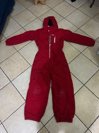 Tuta da sci intera per bambino di 14 anni, di colore rosso della decathlon - Cappuccio integrato. - Chiusura con zip frontale. - Polsini elasticizzati.