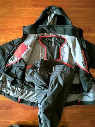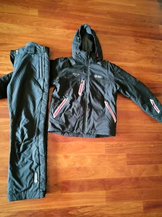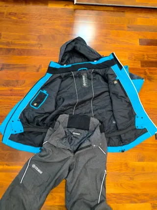 Set di giacca e pantaloni da snowboard o sci. Giacca con cappuccio e varie tasche. Pantalone a taglio ampio con cerniere laterali. Design multicolore in toni terra e nero. 20.000 di impermeabilità e 20.000 di traspirabilità. Mega elasticità.