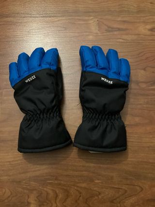 Guanti da sci per bambini della marca Wedze. Perfetto per mantenere le mani calde sulla neve. Colore blu e nero. Design con elastico al polso.