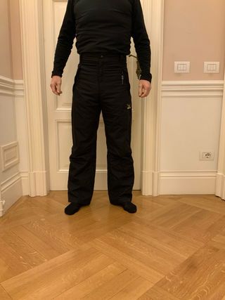 Pantaloni da sci Colmar originali, taglia 46. - Colore grigio scuro. - Chiusura con zip e bottone. - Tasche laterali con zip. - Fondo gamba elasticizzato. Ha una piccolissima macchia di scoloritura sulla gamba destra, vedere foto