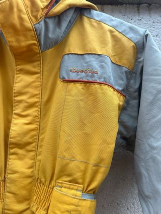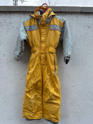 Tuta da sci per bambini della marca Quechua, taglia 116 cm (5-6 anni). Colore giallo arancione e grigio. Cintura elastica. Cerniere nelle tasche. Altezza da spalla a fondo 116 cm. Cintura 30 cm senza stirare. Da spalla a cintura 33 cm. Lunghezza manica 40 cm. Lunghezza parte interna della gamba 50 cm. Usato, ben conservato, impermeabile e molto caldo.