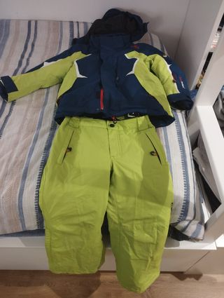 Set da sci per bambini in buone condizioni, senza rotture o macchie importanti. Ideale per la neve. Taglia del set: 104 (4 anni). - Bretelle del pantalone con logo CMP. - Tessuto impermeabile e antivento. - Cerniere sui fondo.