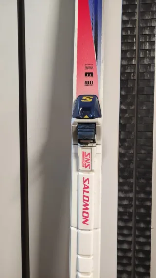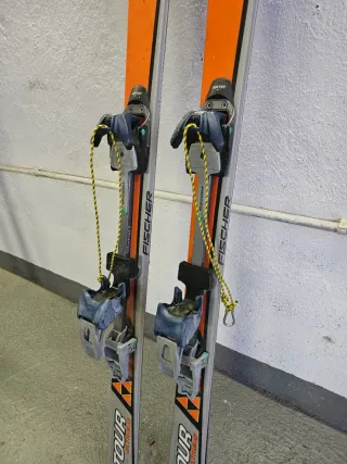 Set di sci da fondo classici con attacchi. - Sci della marca Fischer. 175 cm - Attacchi automatici della marca Salomon. - Bastoni da sci inclusi.
