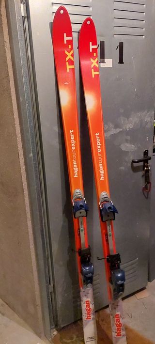 Sci da sci di fondo Hagan da 147 cm di lunghezza. Fissazioni Diamir Fritschi. Taglia M regolabile da 280 a 330 mm. Sono in ottime condizioni, quasi non sono stati usati. Includo fotografia con la targhetta delle caratteristiche degli sci. Includo pellicce di foca. Includo anche lame.