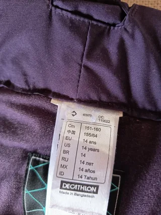 Pantalón neve Decathlon taglia 14 o XS colore viola scuro. Con bretelle rimovibili. 2 usi. Come nuovo.