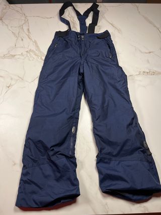 Pantaloncino da sci blu marino per bambino o bambina, taglia 10-12 anni di Decathlon modello Piste 500. Ideale per godersi la neve con comfort e protezione. - Spallacci regolabili. - Cerniere laterali sui pantaloni. - Tasche con cerniera. Come nuovo, usato solo 2 volte