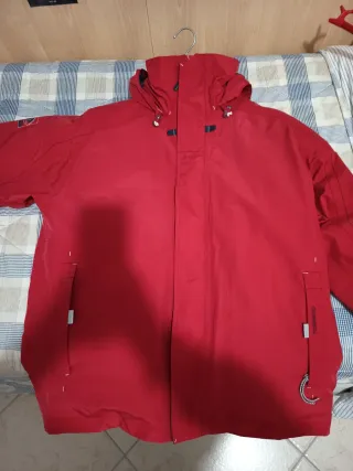 Giacca da sci uomo di colore rosso, taglia L ideale per le attività invernali. - Cappuccio regolabile. - Tasche frontali. - Zip centrale. - Polsini regolabili. Salopette uomo Diadora blu taglia L imbottito