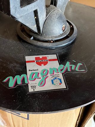 Portasci magnetico marca Wurth. - Base rotonda nera. - Struttura in plastica nera. Per 2 sci