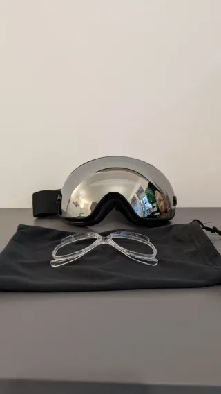 Occhiali / maschera da sci e snowboard, lente specchiata di colore argento con protezione UV. Categoria della lente S3, ideale per giornate soleggiate. Sistema antiappannamento. Ottima visibilità. Compreso sacchetto porta occhiali e supporto occhiali OTG (over the glasses) per mettere la maschera con gli occhiali da vista. Gli occhiali sono nuovi, mai usati. Spedizione rapida #sci #ski #sport #glasses #winter #snow #inverno #neve #uv400 #antifrog