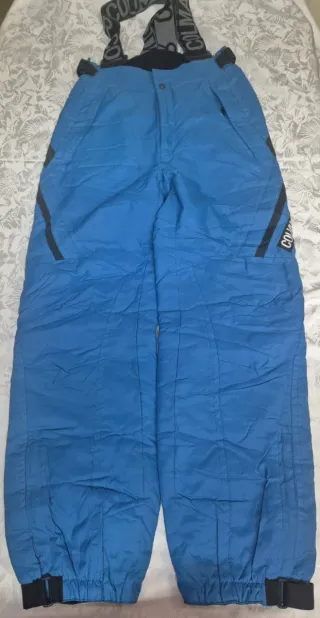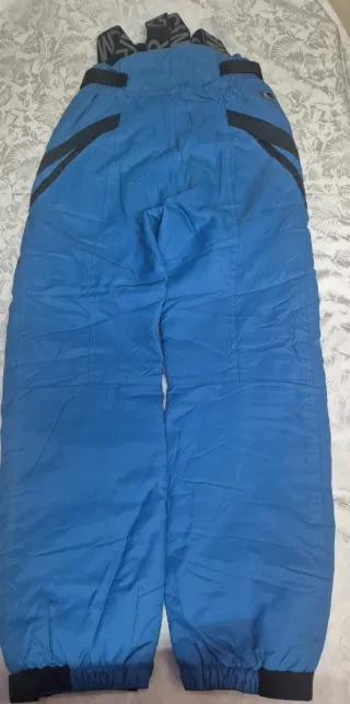 Pantalone da neve/sci marca Etirel 4 anni, blu. Modello salopette con bretelle regolabili chiusura anteriore con zip e clip e tasche con zip. Caviglia apribile con cerniera. Ottima impermeabilità. Usato pochissime volte, come nuovo.