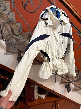Giacca donna da sci firmata Fila, perfetta per le giornate sulla neve. Design sportivo e funzionale. Molto bella e ben tenuta in ordine. La taglia c’è foto etichetta che indica la taglia. Ottimo rapporto qualità prezzo - Firmata Fila - Colore bianco panna - Inserti blu navy - Cappuccio integrato - Coulisse in vita per regolare la vestibilità
