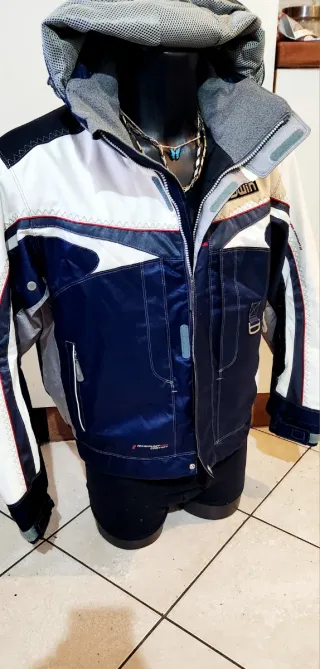 Giacca da sci Sauvage da uomo, taglia 52. Colore rosso, grigio e bianco. Veste stretto, credo 1 o 2 taglie in meno. Picci difetti: ha il retro del cappuccio scolorito e una macchina su una manica. Si vede tutto in foto. Nel complesso ottime condizioni. Ha le prese d'aria con cerniera sotto le braccia - Zip frontale. - Collo alto. - Polsini elasticizzati.