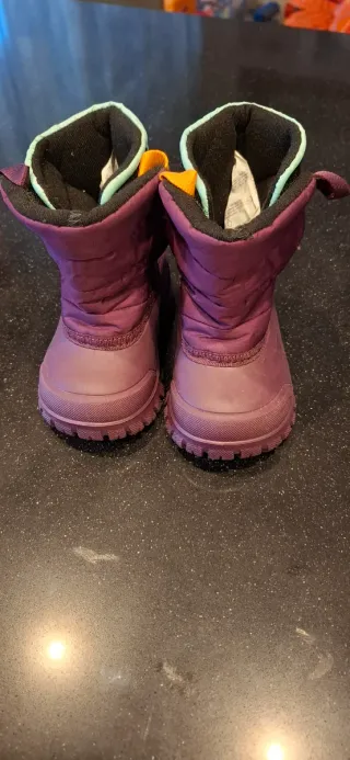 Scarponcini da neve per bambina, colore viola. - Fodera interna calda. - Suola antiscivolo. - Dettagli colorati sul bordo. Indossati una volta per 3 ore. Perfette condizioni