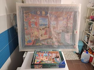 Vendo bellissimo puzzle della Ravensburger di 1000 pezzi incorniciato con una bellissima cornice celeste effetto legno con vetro. Mai stato aperto ed ancora imballato dalla Corniceria dove ho fatto realizzare il quadro.