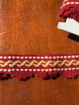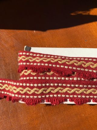 Bellissima passamaneria con doppio labbro, nei colori rosso e oro. Perfetta per lavori di cucito e artigianato. Lunghezza 3 metri e larghezza 3 cm - Colore: Rosso e oro - Materiale: Tessuto