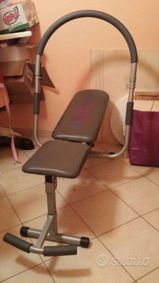 Panca per addominali in buone condizioni, ideale per allenamenti a casa. - Struttura robusta e stabile. - Seduta e schienale imbottiti. - Arco superiore per esercizi più completi. - Comoda impugnatura.